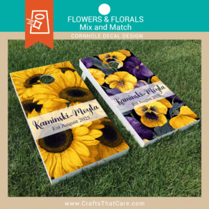 FLOWERS & FLORAL | Custom Sunflower Wedding Cornhole Decal, Personalized Names Date Vinyl Wrap