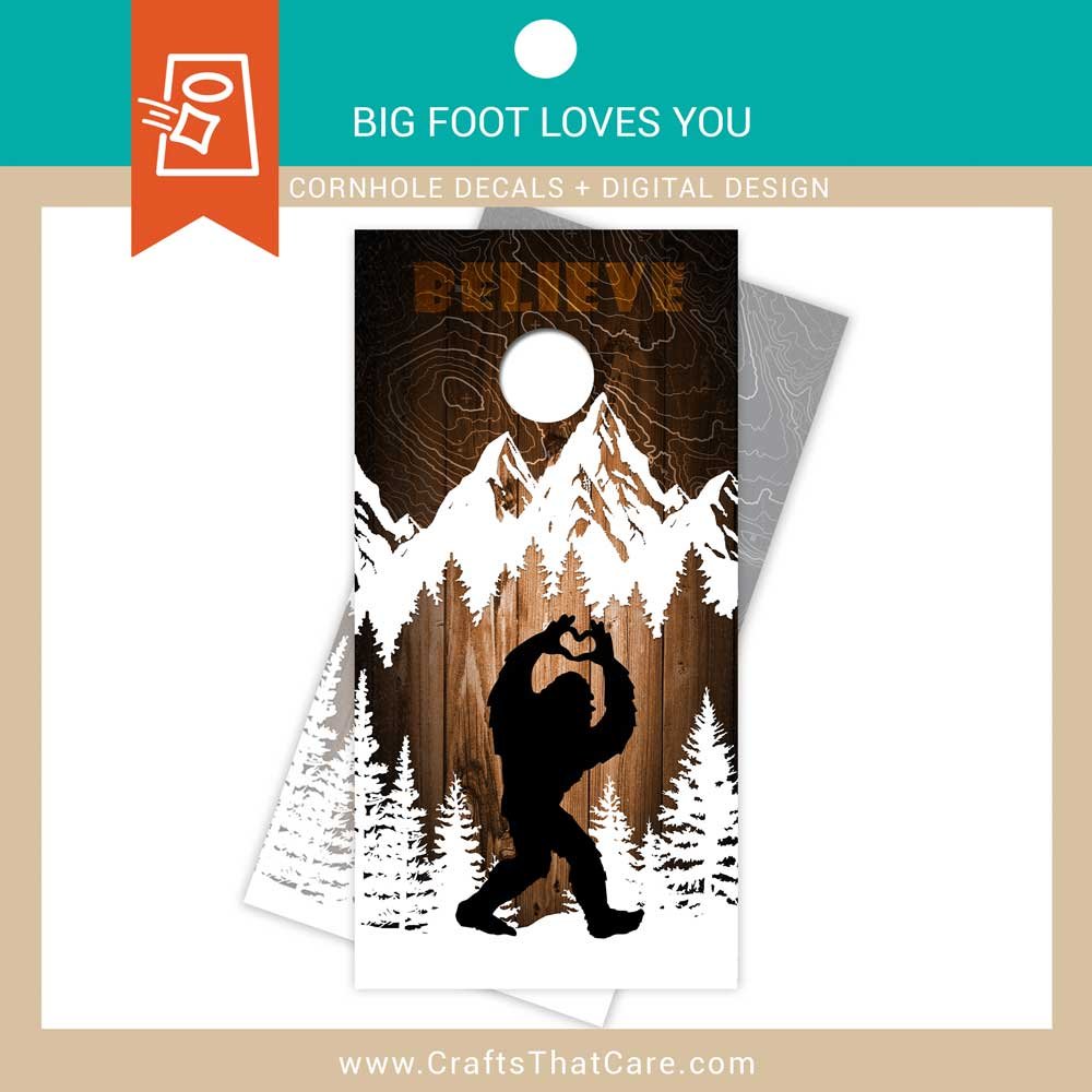 Venture into the wild with our Big Foot cornhole board decals! Show off your love for legend and mystery with these bold, eye-catching designs that will make your cornhole boards the stuff of folklore at any tailgate or backyard party. Easy to apply and built to last, these decals will have you tossing in legendary style all season long. Get ready to dominate the cornhole field with the same elusive power as Sasquatch in the wilderness!
