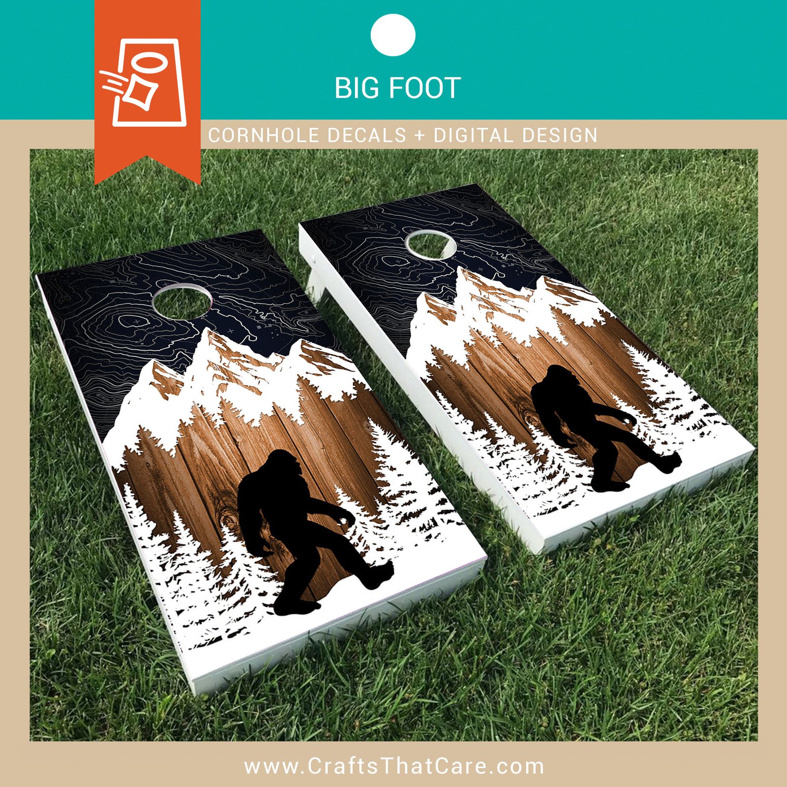 BIG FOOT | Sasquatch, Legend, Cryptid, Cornhole Board Decals, Outdoor Games, Tailgate