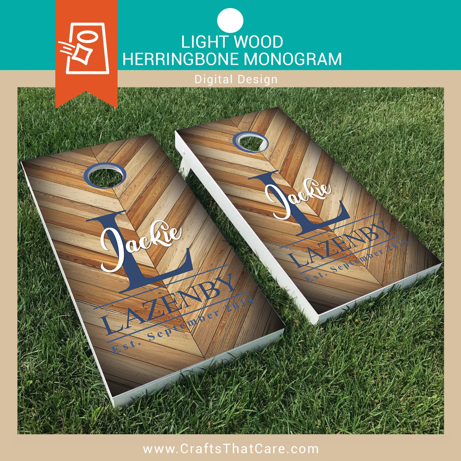 MONOGRAM | Custom Herringbone Wood Cornhole Board Wraps, Rustic Chevron Design Cornhole Decals, Rustic wedding decor, Cornhole decals, Wedding welcome, Rehearsal dinner, Personalized gift